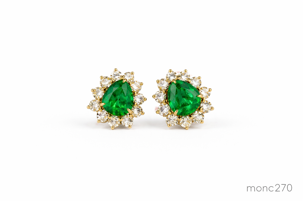 EXQUISITE 18K GOLD EARRINGS EMBELLISHED WITH DIAMONDS, EMERALDS, AND SAPPHIRES — A RADIANT BLEND OF LUXURY, COLOR, AND TIMELESS ELEGANCE.