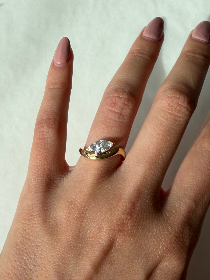A curved, organic pinky ring crafted in gold and set with a lab-grown diamond. A minimalist and refined piece that adds subtle brilliance and modern elegance. Perfect worn alone or stacked.